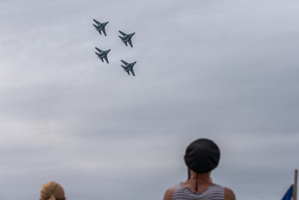 В День Военно-Морского Флота России во Владивостоке авиационная группа высшего пилотажа «Русские витязи» 237-го Центра показа авиационной техники ВВС России им. И. Н. Кожедуба исполнила фигуры высшего пилотажа.