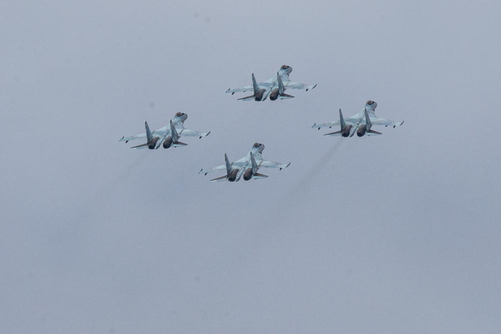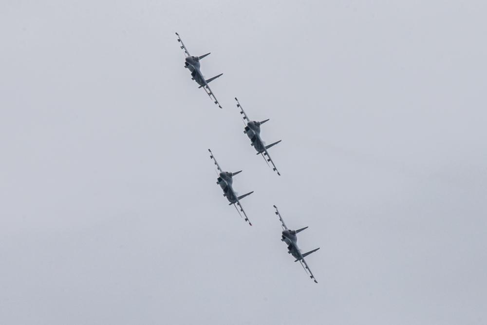 Авиашоу пилотажной группы под командованием гвардии полковника Андрея Алексеева продлилось примерно 30 минут.