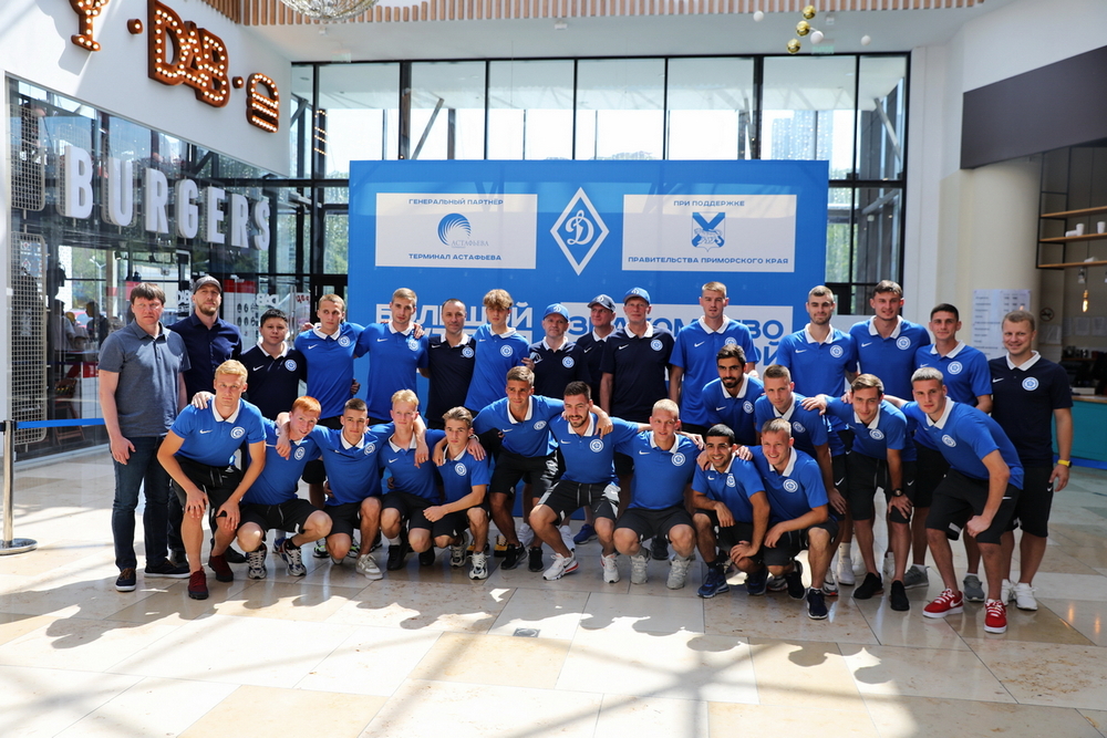 Презентация футбольного клуба «Динамо-Владивосток» прошла в торгово-развлекательном центре «Калина Молл». Футболисты и тренеры познакомились с будущими болельщиками команды, один из которых даже передал в клубный музей раритетный флажок еще советского владивостокского «Динамо».