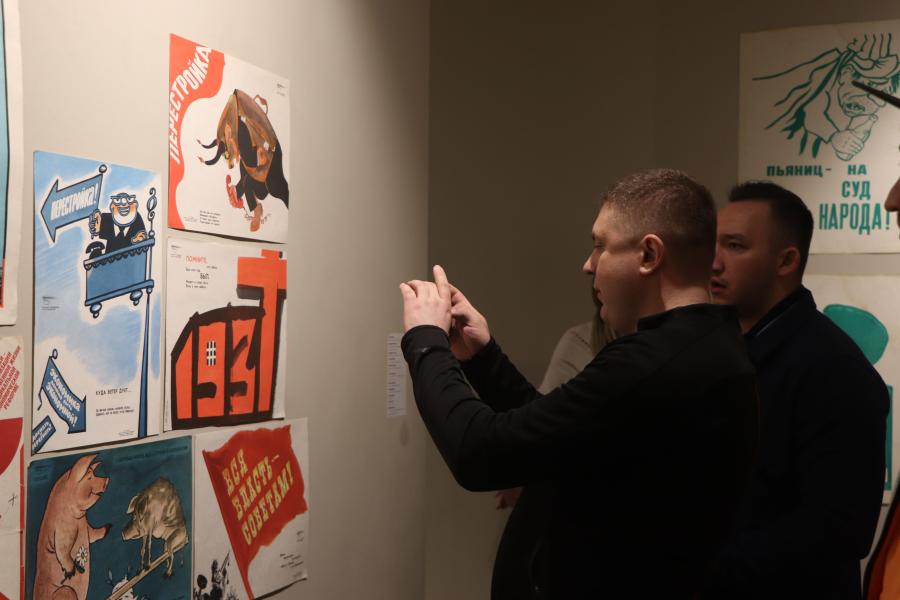 В экспозиции представлены советские плакаты и плакатная графика современных художников Василия Галактионова, Влада Лукьяновича, Михаила Чувакина (Владивосток), Дмитрия Пантюшина (Москва), Даниила Титова (Красноярск).