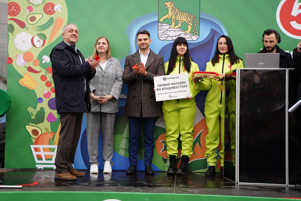В торжественной части мероприятия и перерезании символичной красной ленты приняли участие заместитель председателя правительства Приморского края Николай Стецко и исполнительный директор территории Дальний Восток торговой сети «Пятерочка» Антон Безрядин.